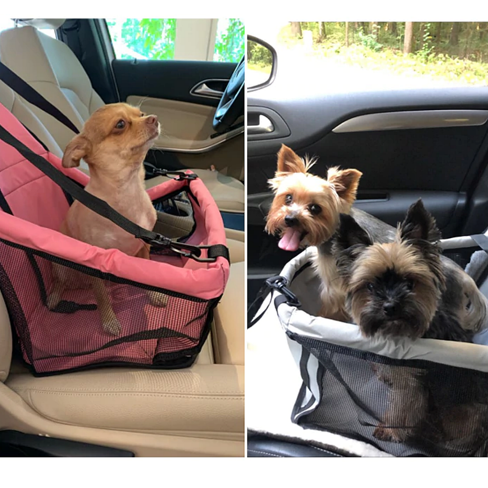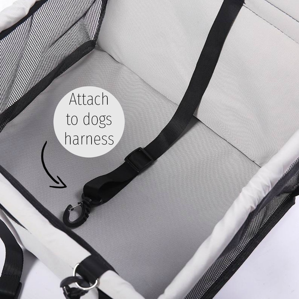 We know keeping your small dog on your lap while driving is tempting, but it's not safe. Keep them comfortable and safe in their own seat. Attached is a safety belt, which prevents distracted driving. It also helps to keep your car free of dirt and dog hair. The zipper compartment is great for storing treats or toys. The seat is waterproof and can easily be cleaned with a damp cloth or handheld vacuum.