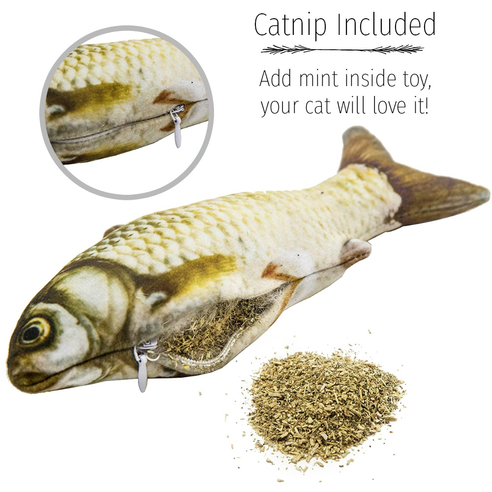 A happy cat is often a healthy cat! Our fish plush toy will help to reduce anxiety or stress that your cat may have. Great for keeping cats busy, which helps to burn off energy and keep them from being mischievous. Add catnip inside the zipper pocket, your cat will love it.