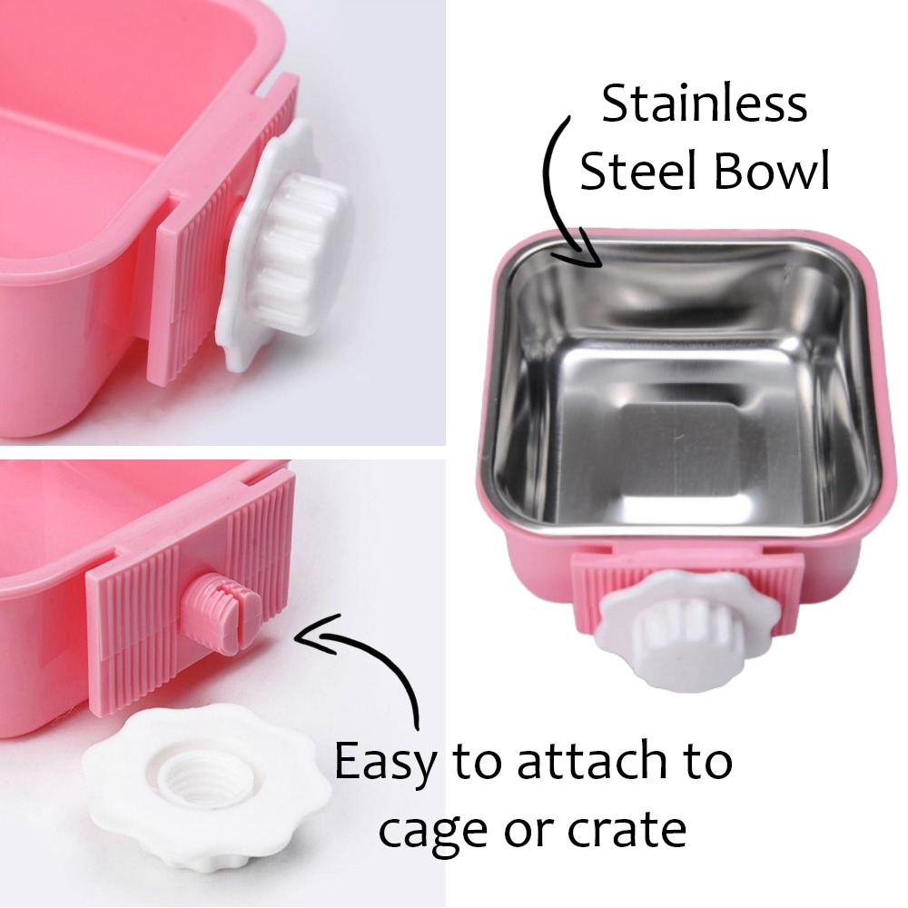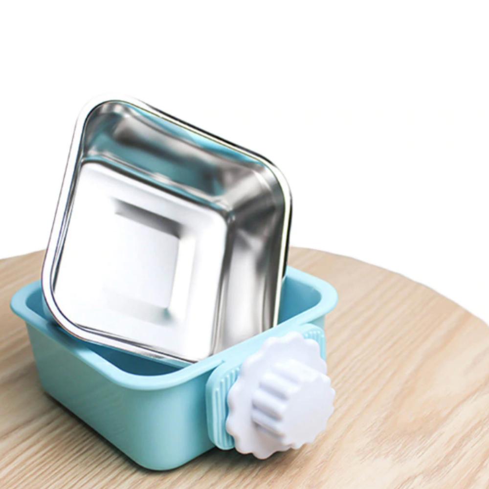 The perfect stainless steel pet bowl for crates. Popular because they're durable yet lightweight, and come in a variety of beautiful colors. There are two parts to the bowl, the inner bowl is stainless steel and the outer bowl is a non-toxic plastic. They can be used separately (food and water dishes) and are easy to clean. Perfect for kibble, wet food and water.