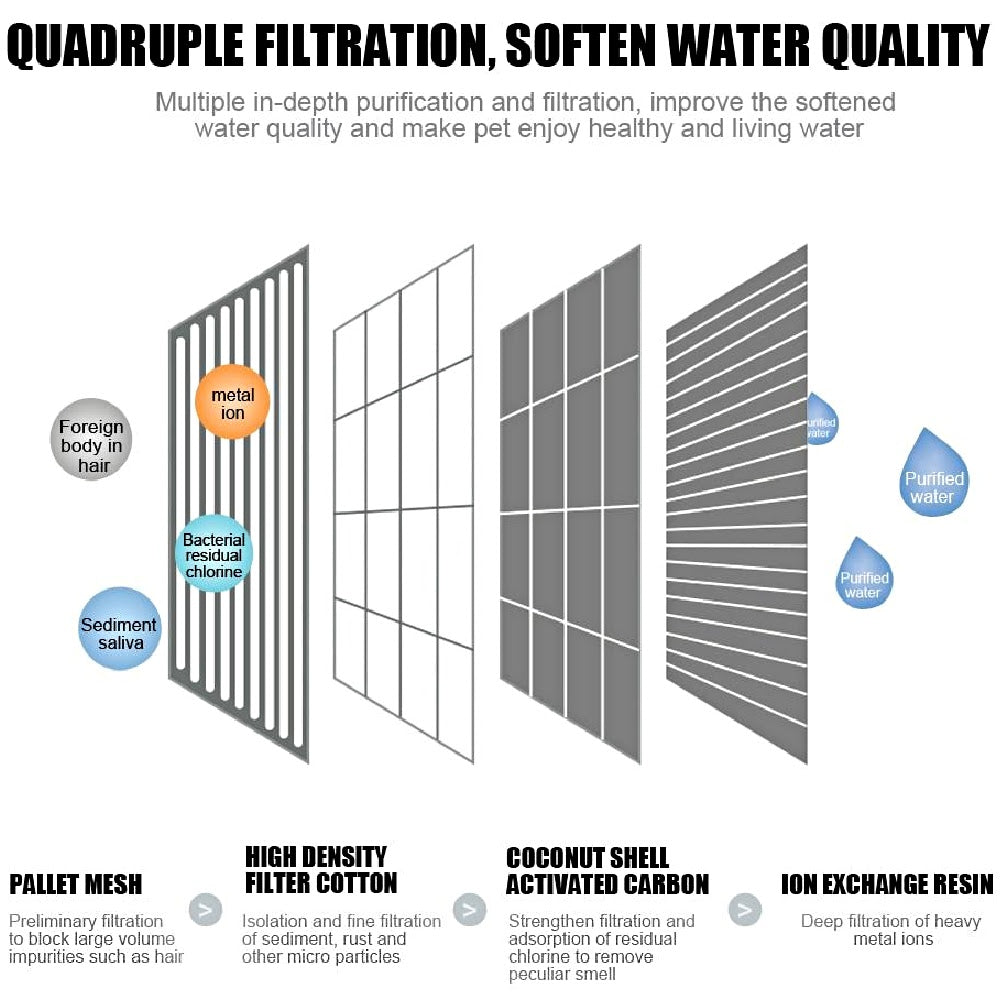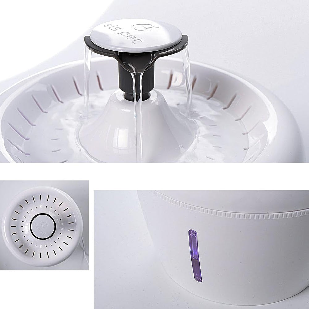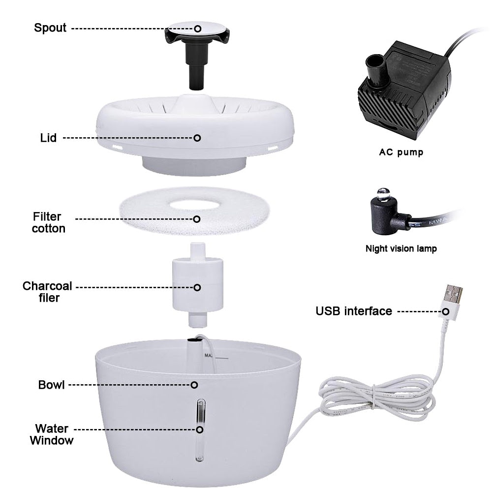 Our LED water fountain will attract your pets attention, with its beautiful and vibrant light and encourage your pet to drink more water. The high density filter works to purify the water, remove dirt and food particles. The fountain comes with 1 filter. The unique design makes fresh water always available to your pet.