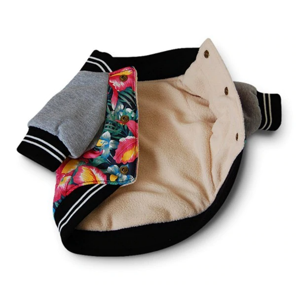 A trendy jacket for the sassiest dogs and cats. The interior lining is made of soft fleece which is perfect for the cooler Spring or Autumn days. The vibrant colors will be a great pop of color in all your awesome pet photos.