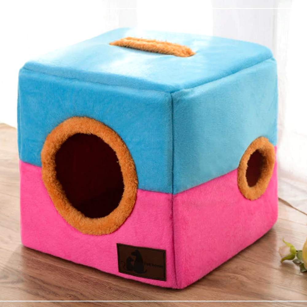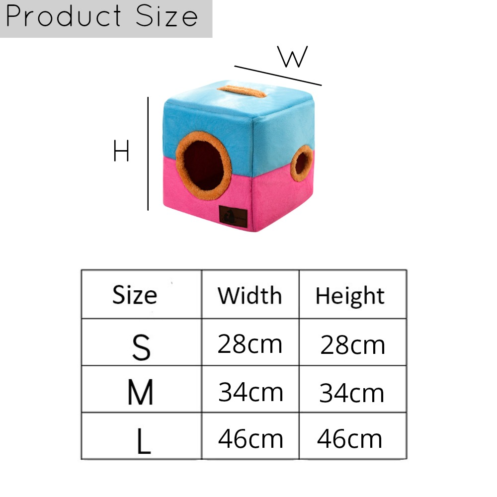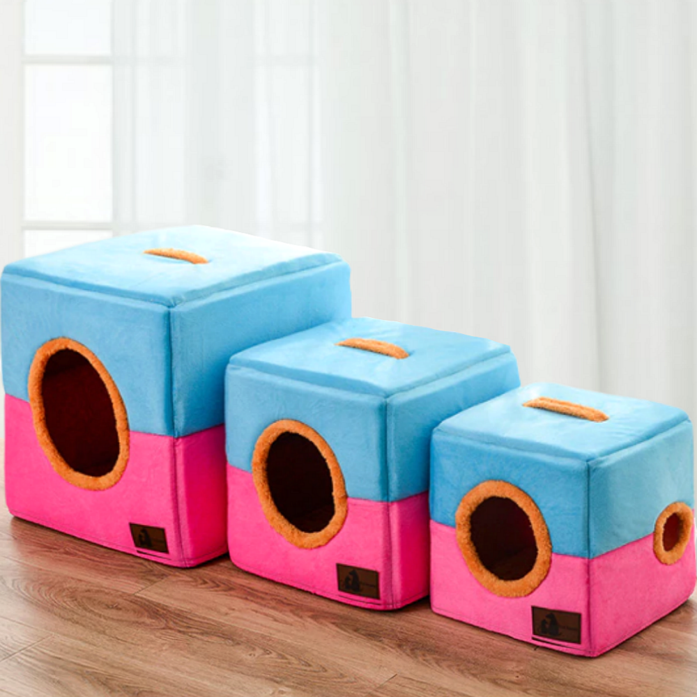 Your furry family member will love taking naps or simply relaxing in our cube pet house. The house is made of the softest cotton, and beautiful vibrant colors.