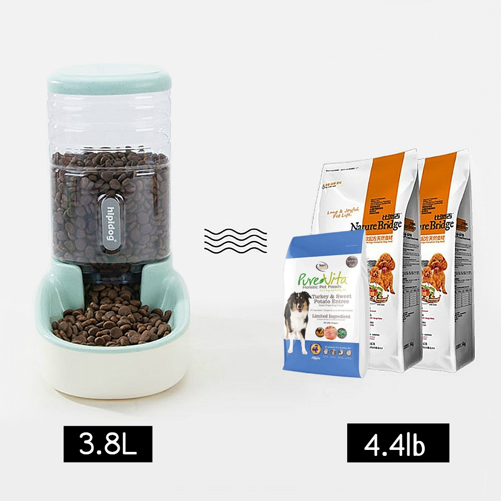 The food dispenser holds 3.8 L of dry food, so you don't have to worry about your pet getting hungry if you're not home. Great option for single or multiple pet households. The dispenser is made of non-toxic plastic and a non slip base. Choose from our 4 beautiful colors.
