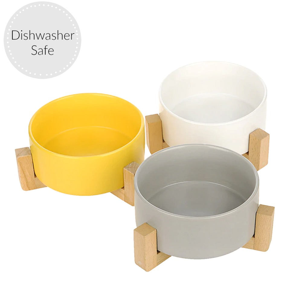 Made of premium ceramic and a natural bamboo base, our pet bowl is the safest choice for your pet and the environment. Easy to clean, with a smooth surface and conveniently dishwasher safe.