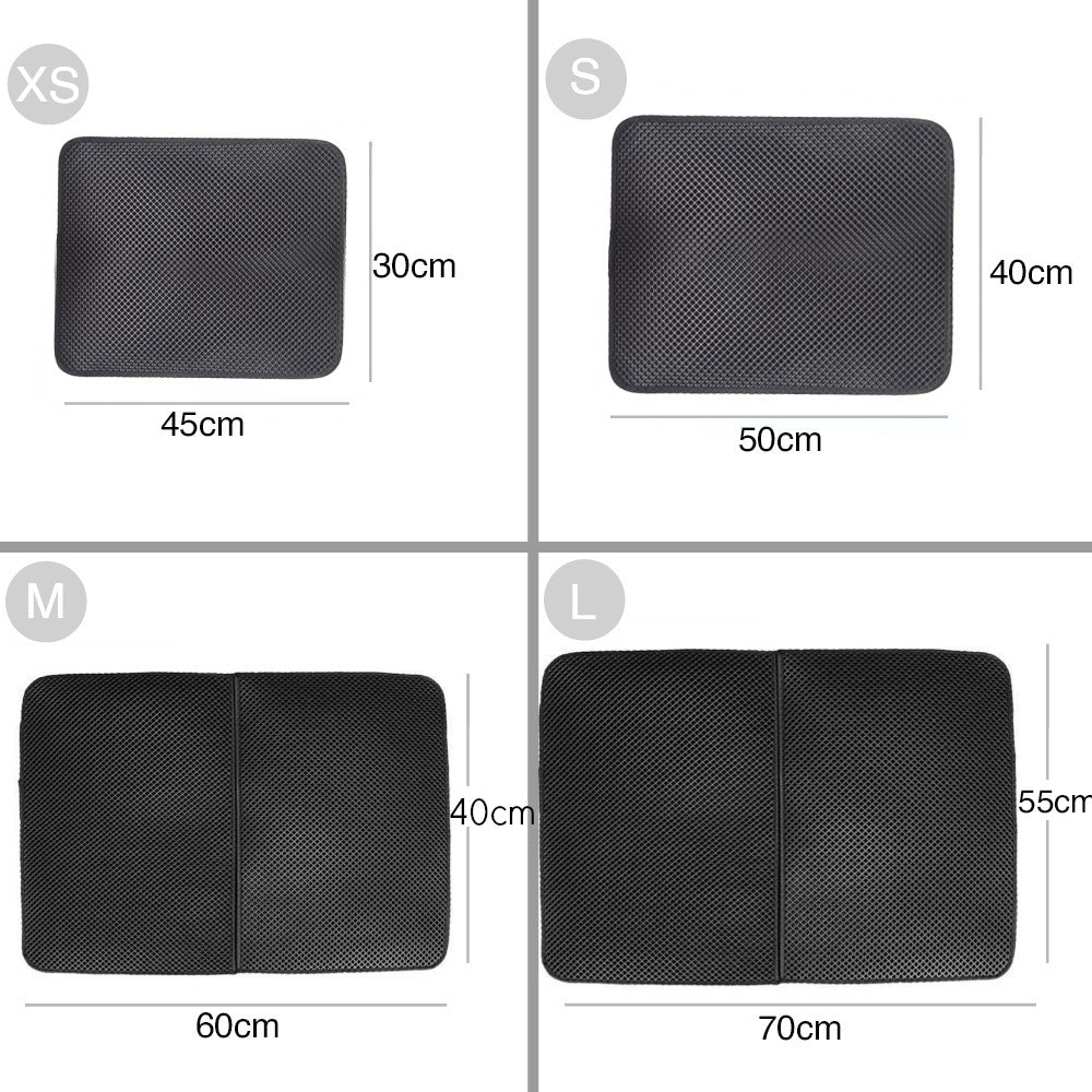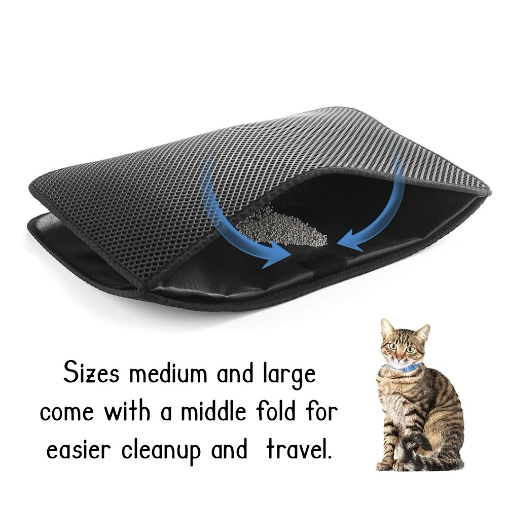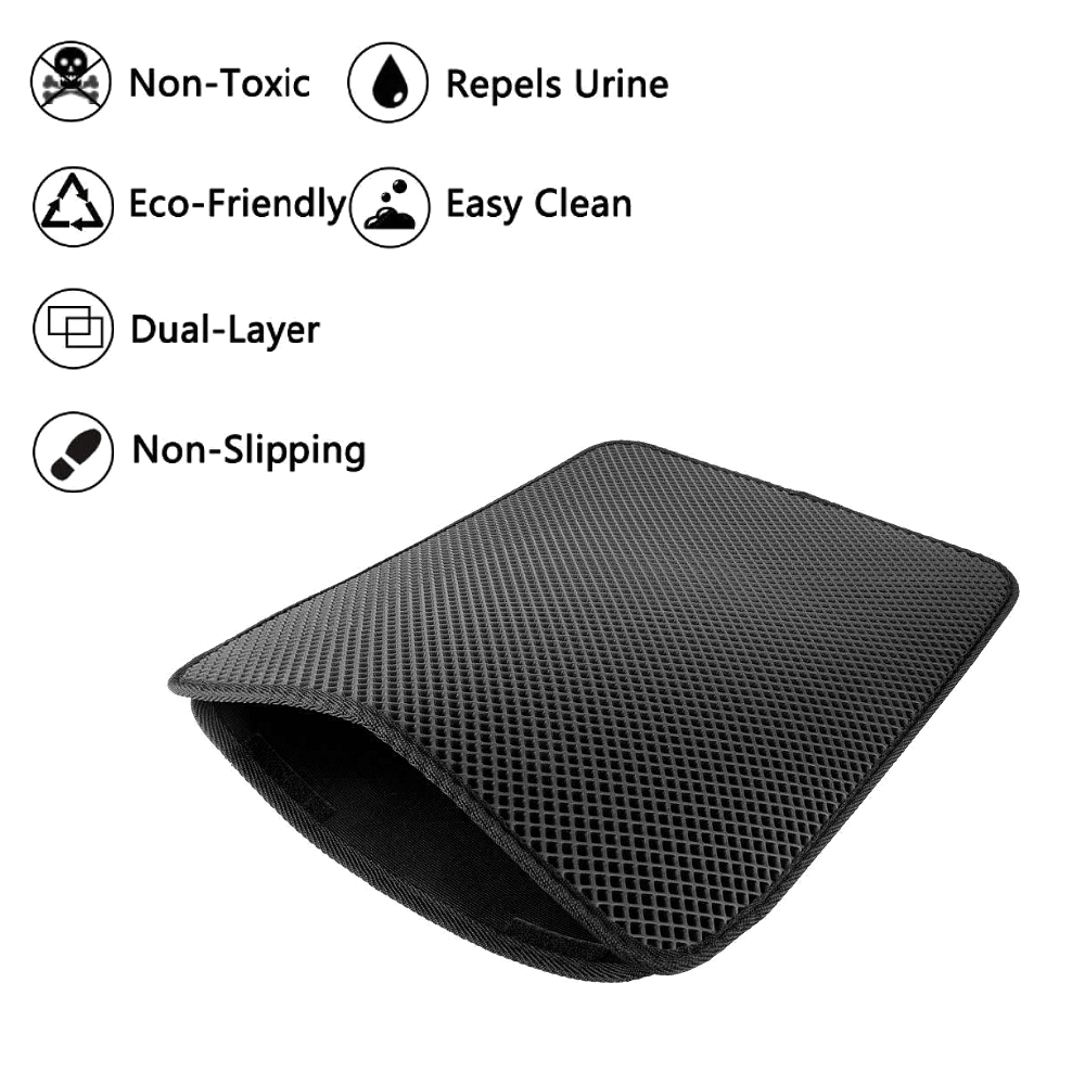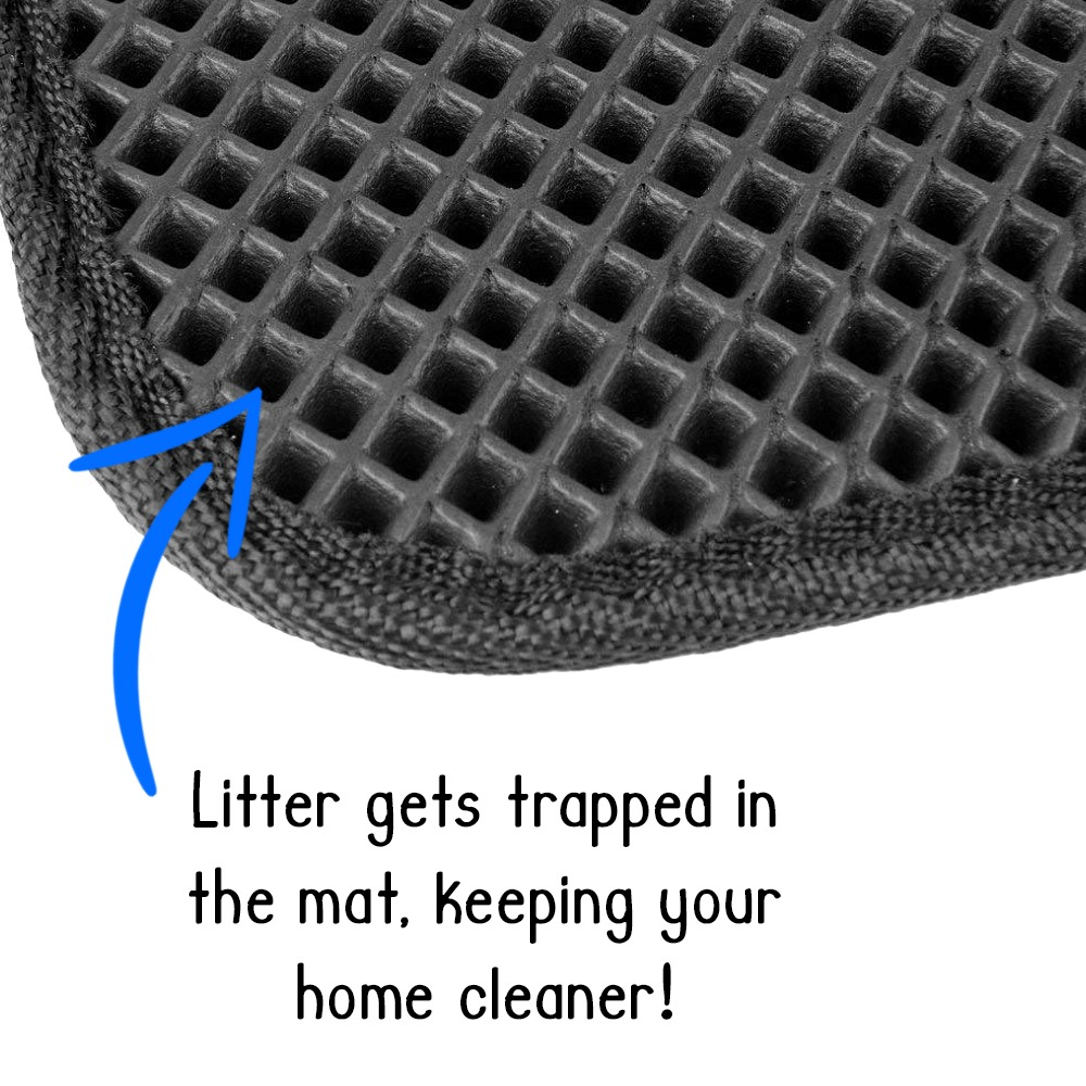 Keep your home clean of cat litter! The double layer design helps gather the litter on the upper layer that falls off the paws or while cats are digging, it then goes through the holes to the bottom layer. The bottom layer is waterproof, which means no urine falling on to carpets or hardwood flooring. To wash it simply use water, or eco-friendly and pet friendly products.