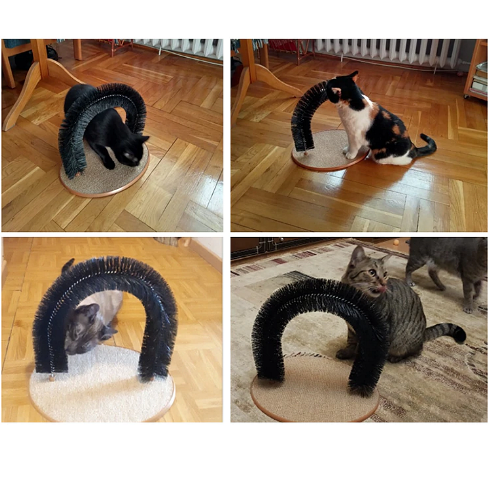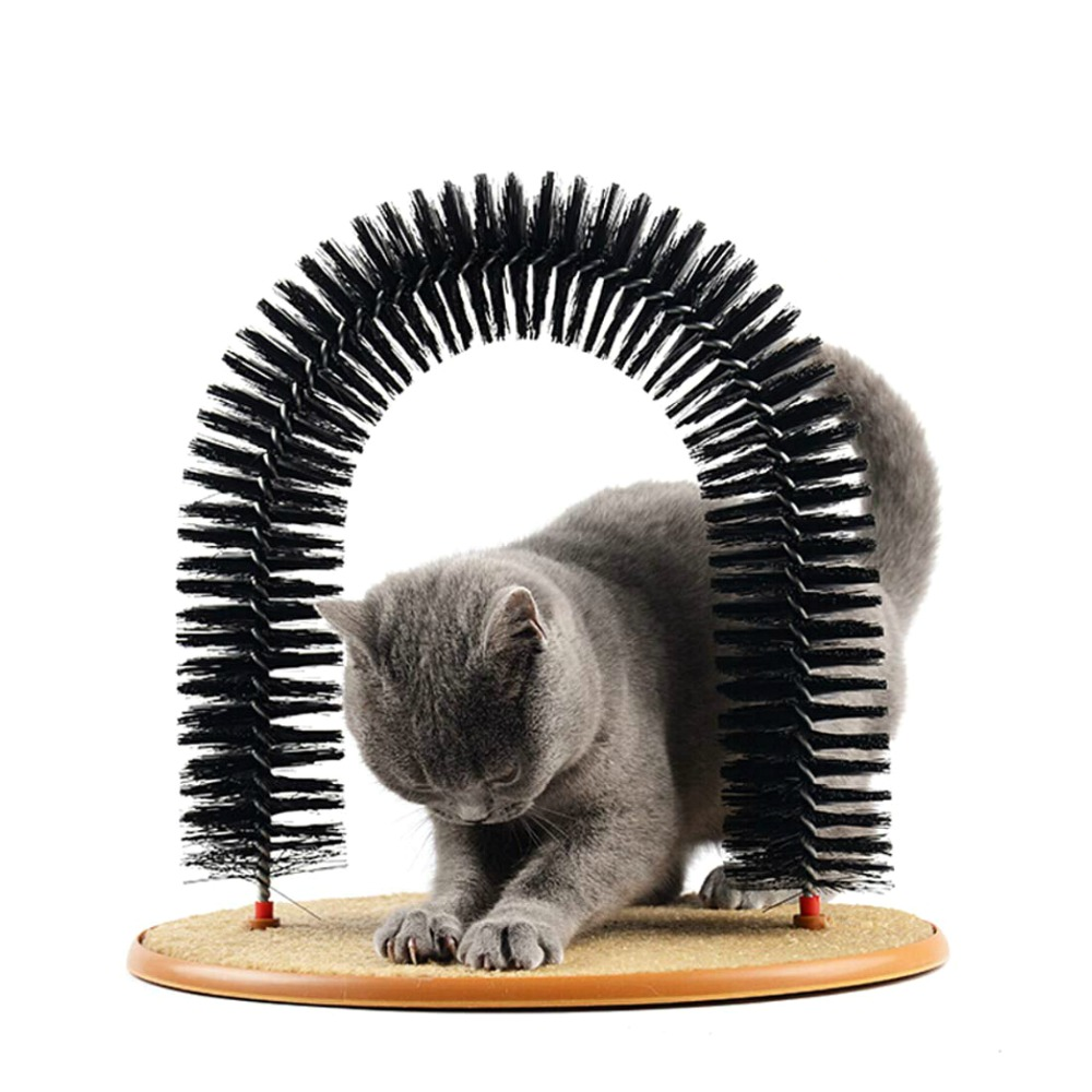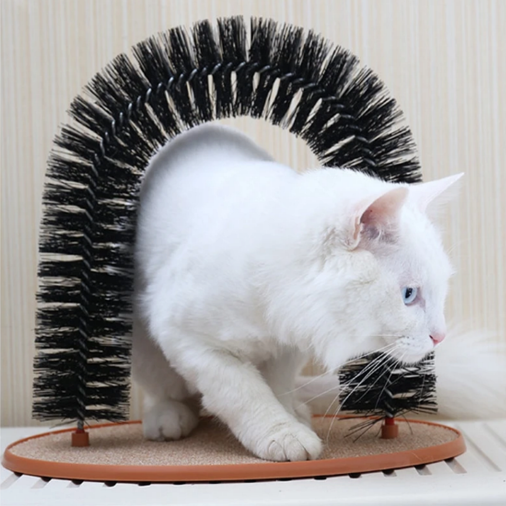 Here's a great way to keep cat hair off your clothes and furniture. The grooming arch is designed to remove loose fur while also giving your cat a massage. The non-slip base is carpeted which provides a great scratching pad. Best part is you don't have to do much! Simply let your cat walk through the arch and the bristles will do the rest.