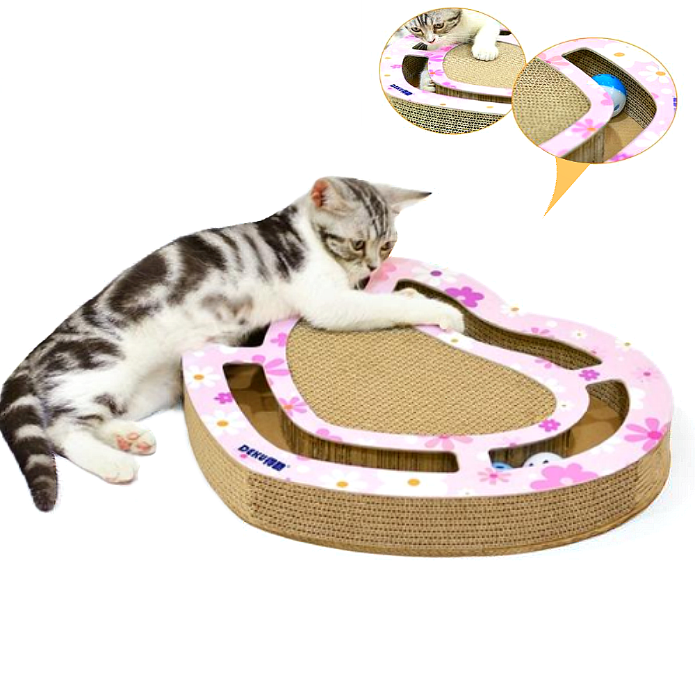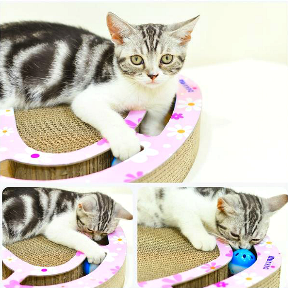 Our super cute cardboard design helps satisfy your cats scratching instincts. A great tool to relieve stress, increase exercise and helps to keep cats from scratching furniture. The balls help to grab your cats attention and keep them entertained.