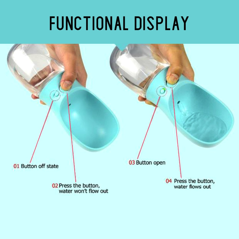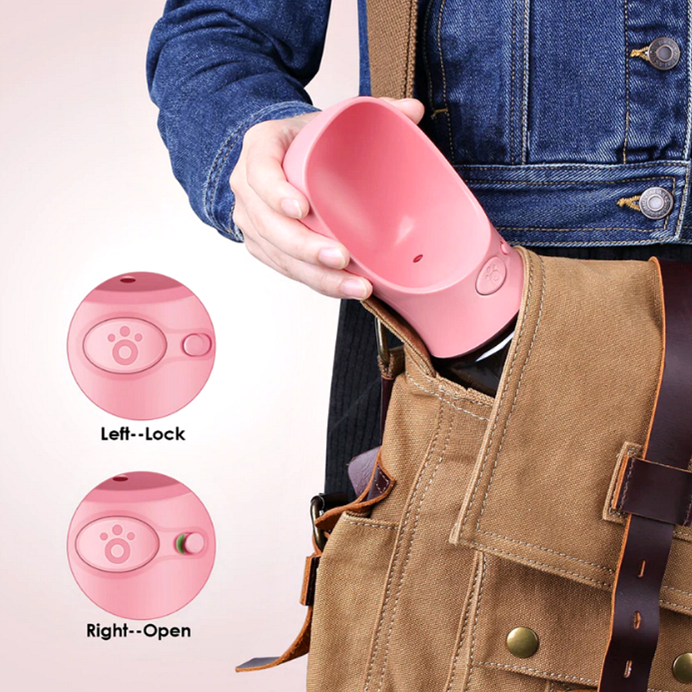 A lightweight and portable pet water bottle, a perfect choice for walks, hikes and travel. Single hand operation with a locking feature to prevent water from leaking. The bottle is made of food grade ABS material, which is non-toxic, BPA free and completely safe for pets. Treat your dog to fresh water, no matter where you are.