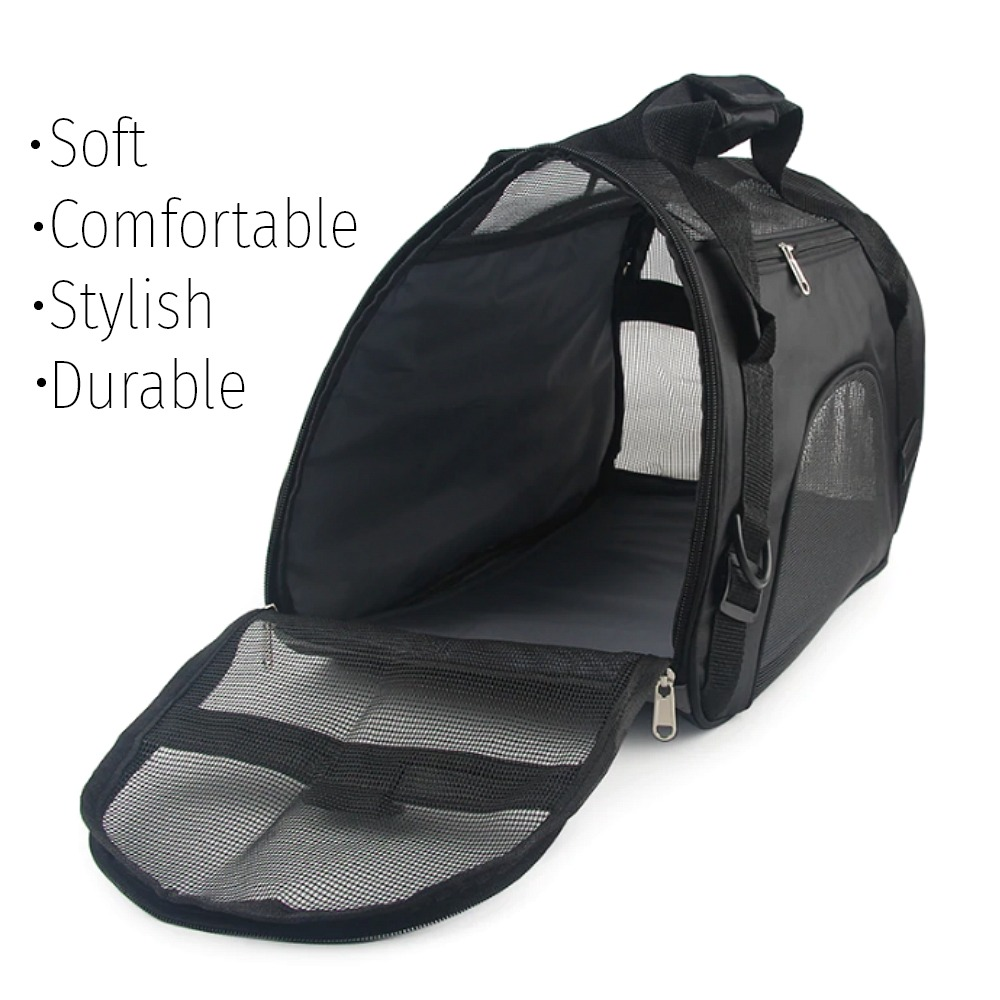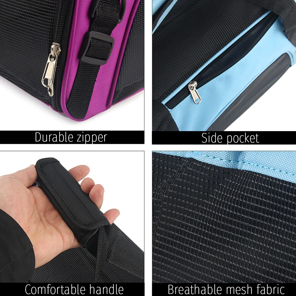 Our soft sided carrier is designed to keep your pets cozy and cool, with comfortable and breathable materials. The safety buckle allows the carrier to be restrained with a vehicle seat belt, keeping your pet safer. Don't worry about tiring your hands, the padded shoulder straps add additional comfort and ease.
