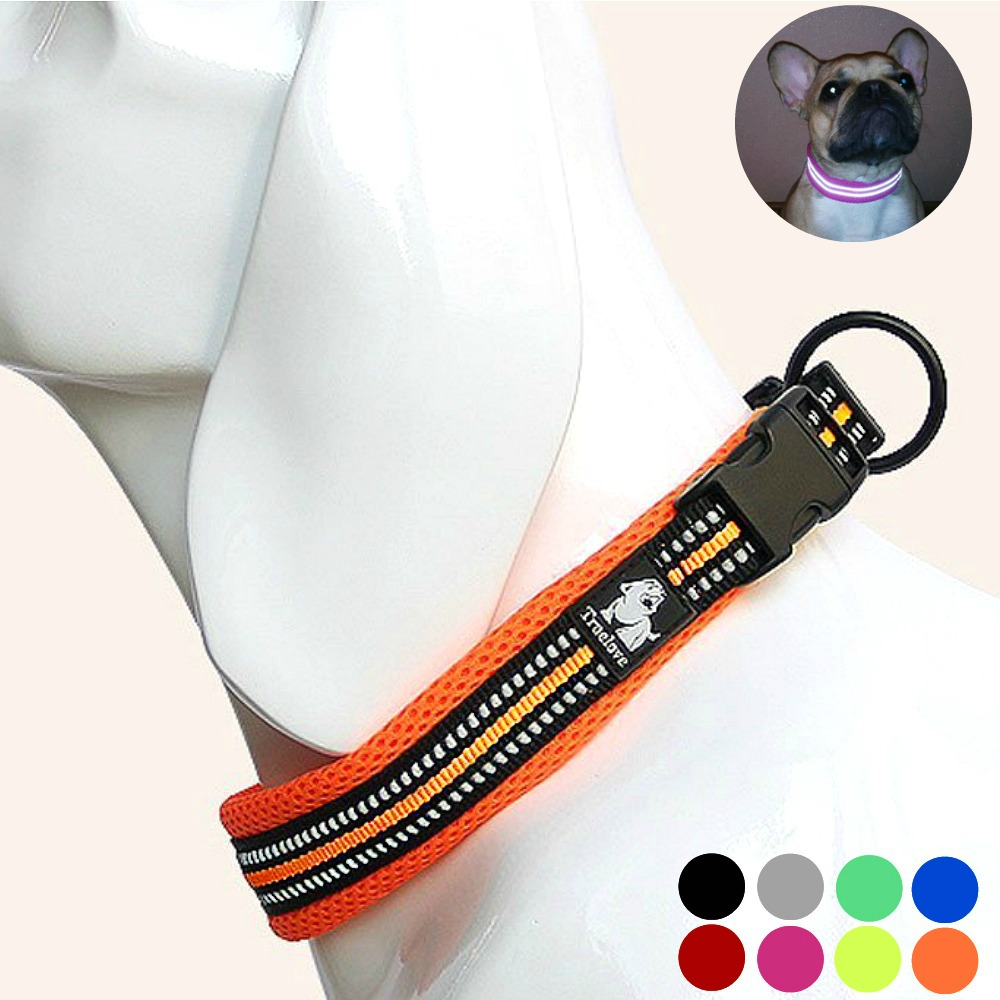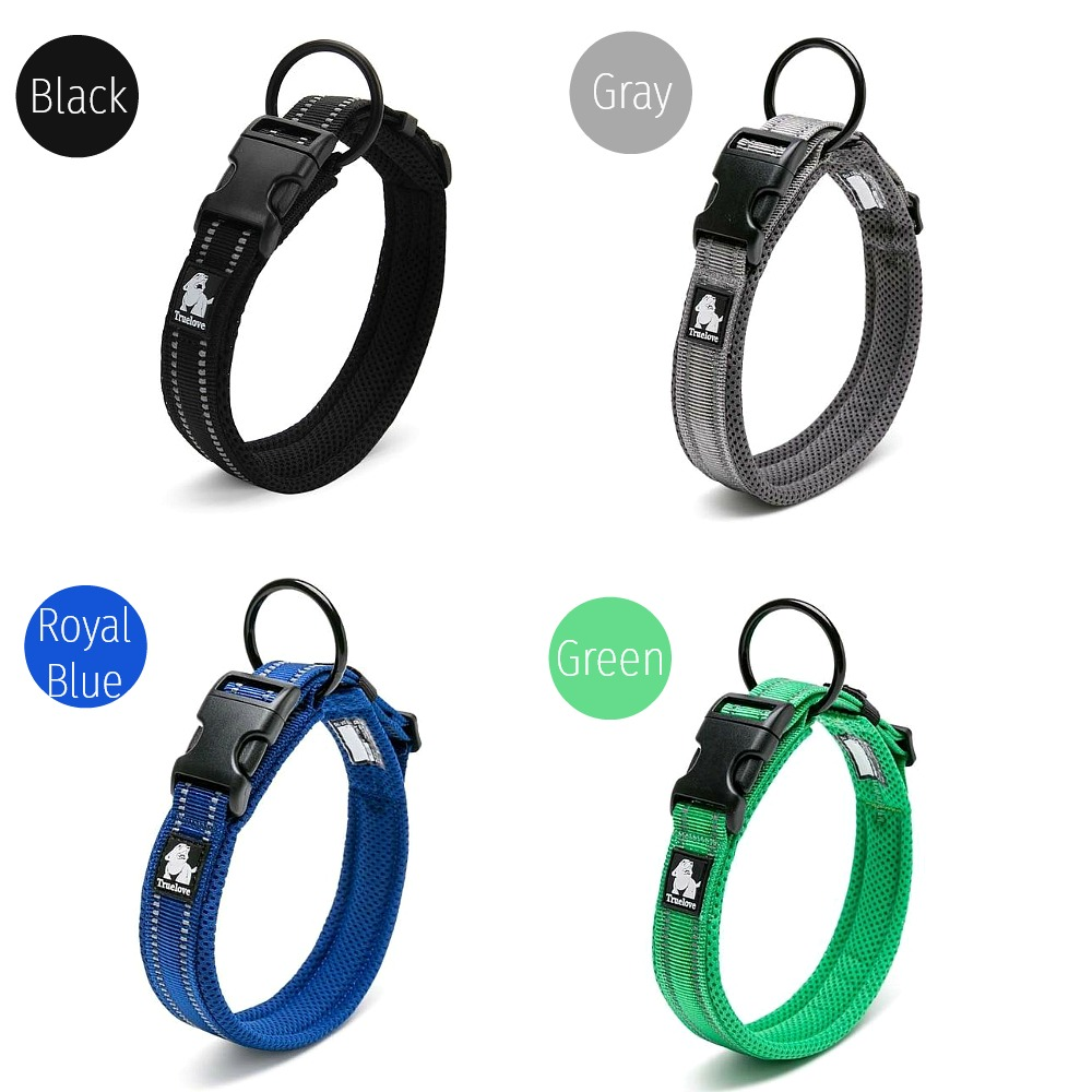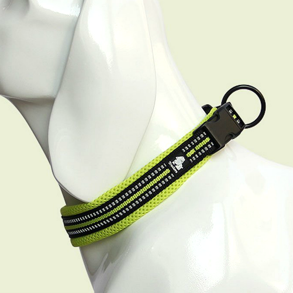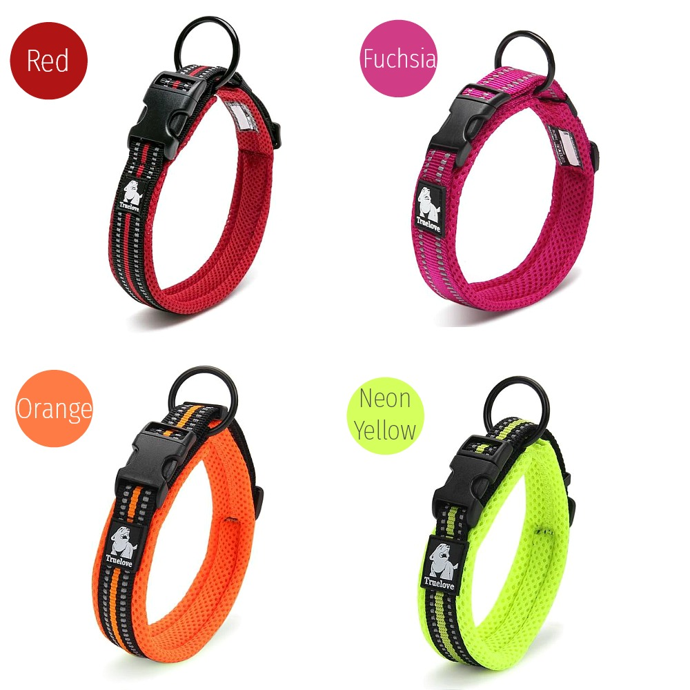 Our padded, reflective collar is perfect for walks, hikes and jogs. The reflective stripes ensure good visibility at night, keeping your dog safe from oncoming traffic. Made with durable yet lightweight materials, making it comfortable for your dogs neck.