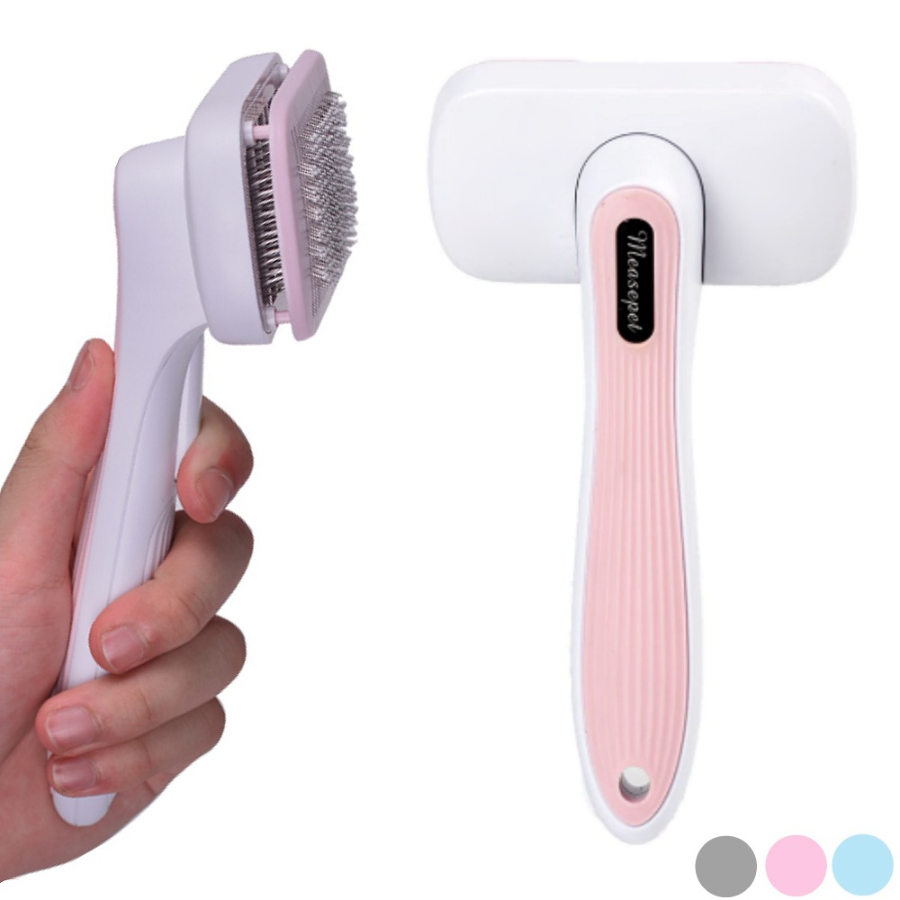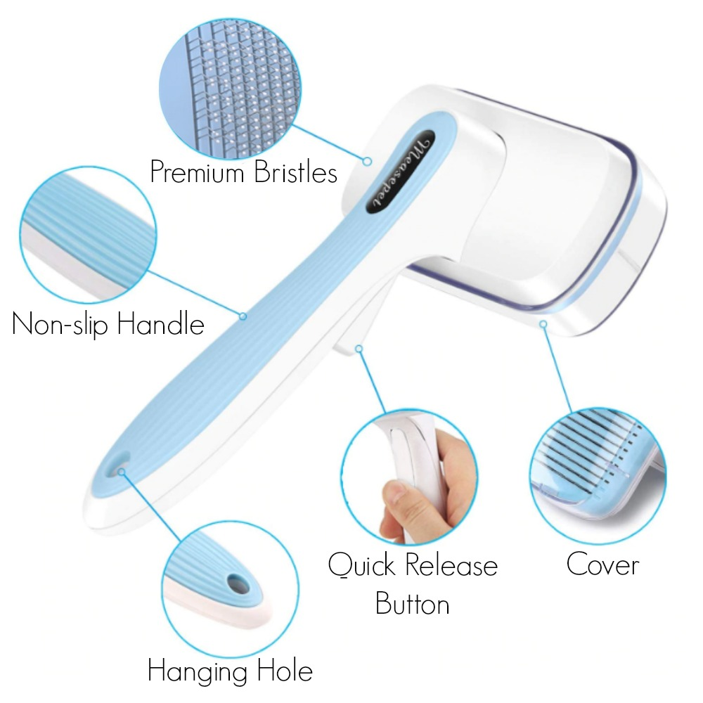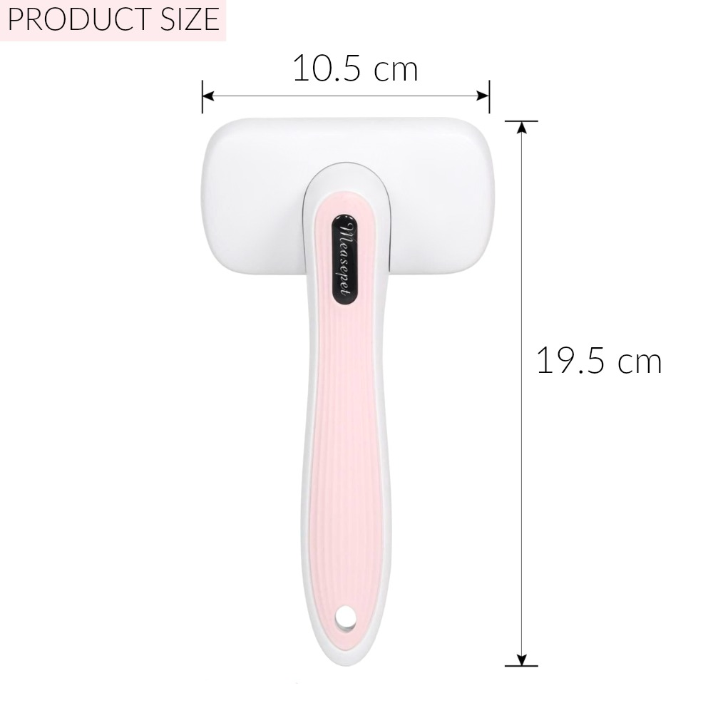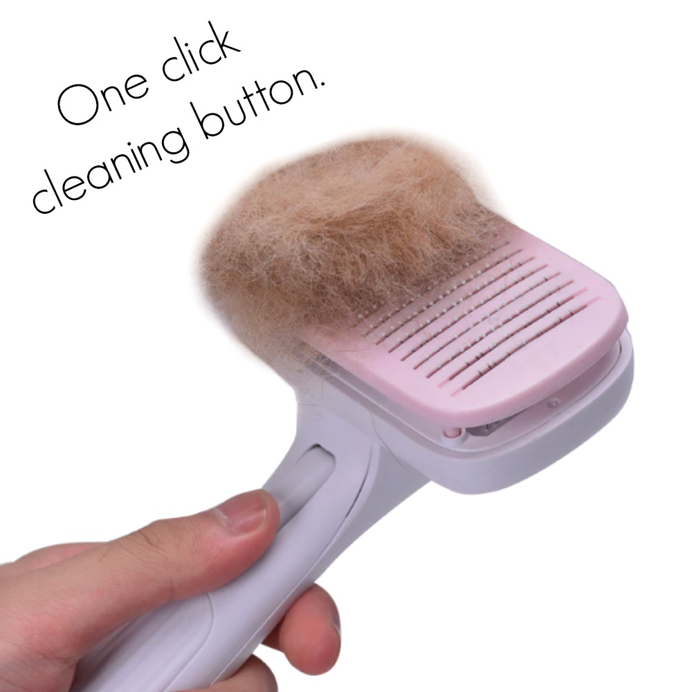 A gentle yet effective pet grooming brush. The curved stainless steel bristles gently remove loose fur, tangles and other debris from your pets undercoat. After grooming, simply press the self-cleaning button to retract the blade making it easy to remove fur off the brush. The non-slip handle is designed for maximum comfort and control, which helps prevent hand and wrist pain.