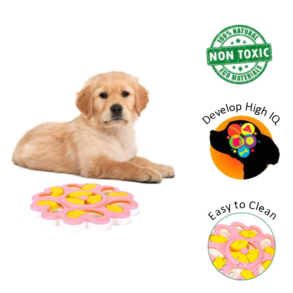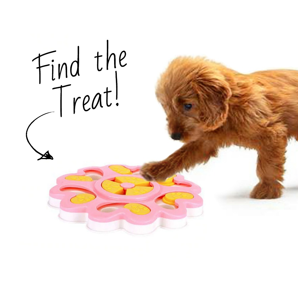 Challenge your dog to find treats through problem solving. Great in reducing boredom and developing higher IQ. Also helps reduce destructive behavior through healthy play.